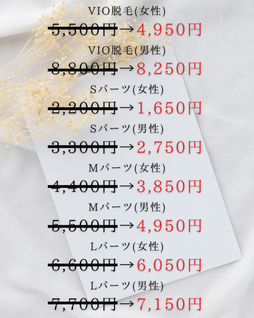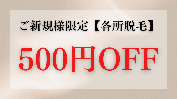 当店では、ご新規様限定で S・M・Lパーツ脱毛が各500円OFF になるお得なキャンペーンをご用意しています✨