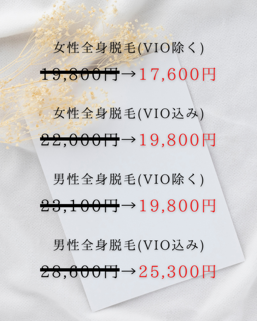 ご新規様限定【全身脱毛】🌟女性2000円・男性3000円OFF🌟