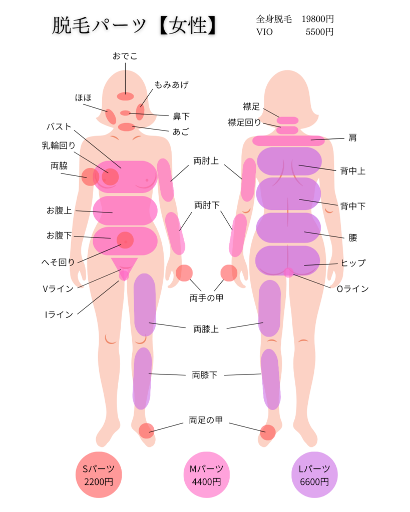 S・M・Lそれぞれの部位に合わせて、日々のストレスを減らしながら「キレイ」を積み重ねられるのが脱毛の魅力です✨