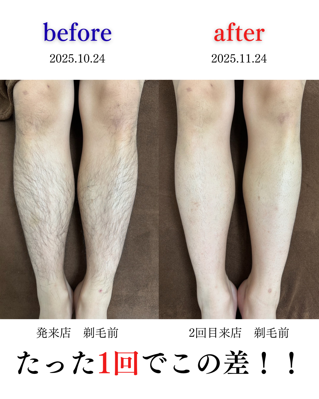 でもこちらの写真の通り、たった1回でも、毛の伸び方や